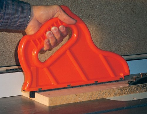 Unique safety device keeps hands a full 4 inches away from the blade for a complete feeling of security and control. Use the Flat Traction sole plate for tablesaws and jointers and a V groove sole plate for shapers and router tables. Spring loaded pushpin pops out of the handle when the end of the board is reached to finish pushing your board past the blade. Ergonomic handle design allows for greater control to prevent slipping and kickback.